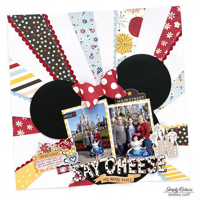 Hello! I love going to Disney with my family and then scrapbooking the photos of those memories. Today I'm sharing with you a layout I made from our 2022 visit. This time, I was inspired by a sketch designed by Allison Davis for the Scrapbook and Cards Today Magazine. I love how colorful this layout is and how it says "Disney" everywhere. The original sketch was a sunburst, perfect for a summer layout. When I saw it though, this idea came to my mind, so I executed it and I'm in love with the result. Now, let's talk about how I made this page.