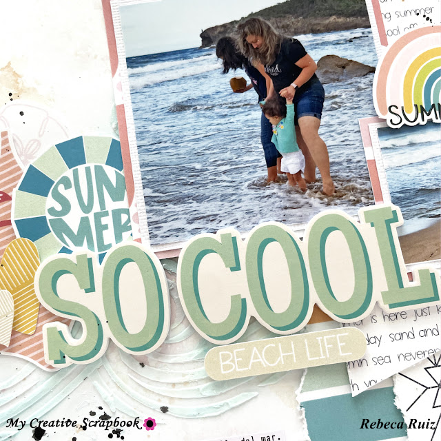 Hello! It's Rebeca Ruiz here today with another layout using the beautiful September Main Kit by My Creative Scrapbook. In this layout, I mixed various patterned papers, used the stencil and paints, tore papers, and used embellishments to create a fun layout to showcase my photos. It may sound complicated, but don't worry. It is very easy and I'm going to explain how I made it so you can do it!